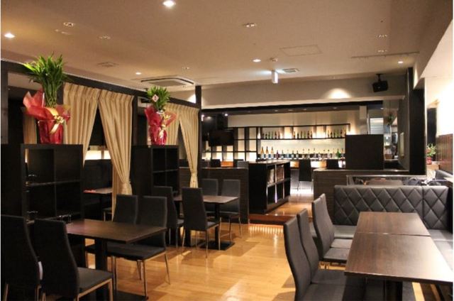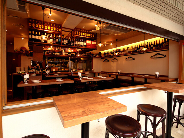 バーカウンターとテーブル席、時期によってはテラス席も用意されている。テラス席は薄いビニールで外と区切られており、ほぼ店内と変わらない気温で楽しめる。