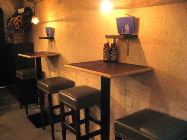 暗めの照明の店内は、バーカウンターやハイテーブルが置かれた隠れ家的雰囲気。1軒目はもちろん、2軒目でしっぽり飲みたい方にもおすすめだ。