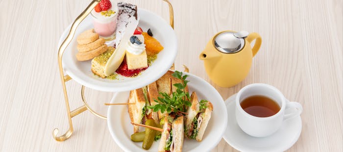 15時から利用できるアフタヌーンティーは、平日であればフリードリンク付きで2000円台。旬の食材を使った焼き菓子やスイーツ、ピンチョスなどが色鮮やかに並びます。