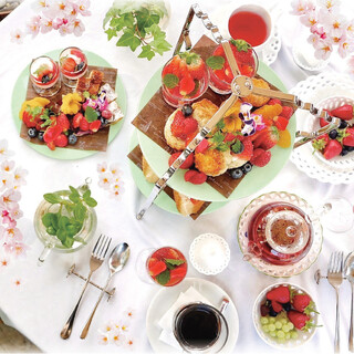 3月は春のいちご畑をテーマに、1ドリンク付きのアフタヌーンティーを展開。全13品で4,000円台と、おなかもお財布もうれしい内容になっています。