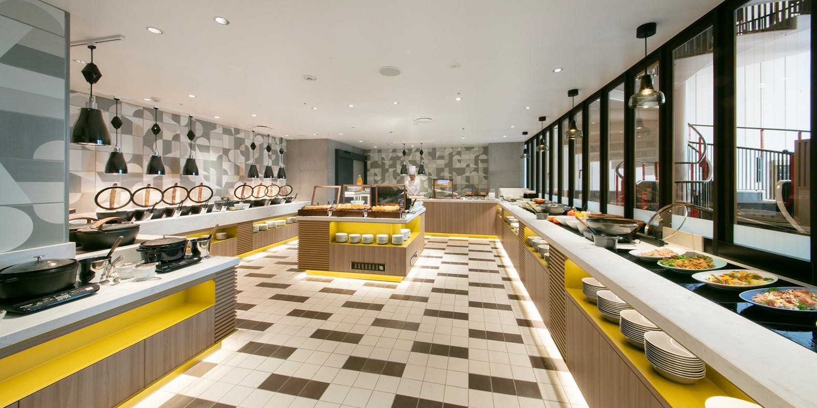 ヒルトン名古屋1階にある「インプレイス 3-3 ヒルトン名古屋」は、世界中のトレンドを取り入れたプレミアムビュッフェレストラン。著名建築家が手掛けた店内は都会的でありながらリラックスできる雰囲気で、心地よい時間が過ごせます。