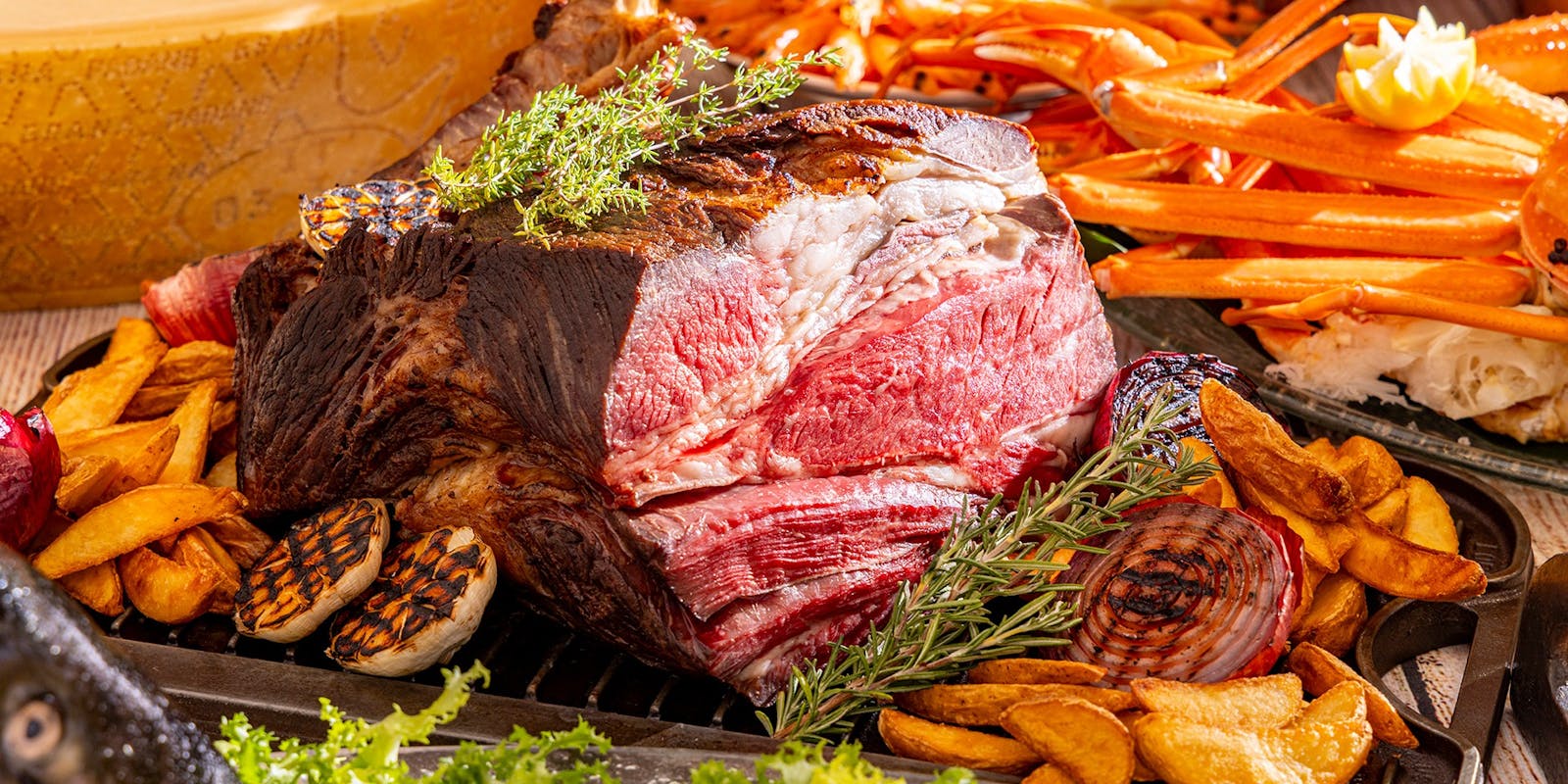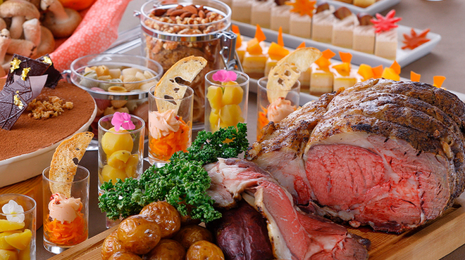 3,000円台からホテルビュッフェが楽しめる当店。ビュッフェコーナーにはスープや惣菜、スイーツ、パンなどが並びます。伝統のローストビーフメインのプランも、ドリンクバー付きで4,000円台です。