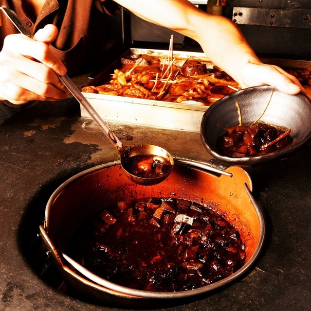 継ぎ足し継ぎ足しで伝承される秘伝の味噌ダレに、玉子やはんべん、こんにゃくをどぼん。ぐつぐつ煮える年季の入った土手鍋は、見ているだけでもお酒がすすみそう。