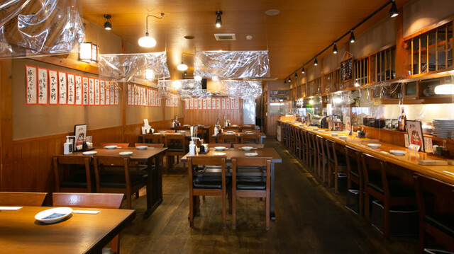 多くの人で賑わう広々とした店内には、長くつづくカウンター席、仲間とワイワイ楽しめるテーブル席が用意され、誰もが気軽に立ち寄れる雰囲気。金曜、土曜は午前3時まで営業でゆっくり飲めるのも嬉しい。