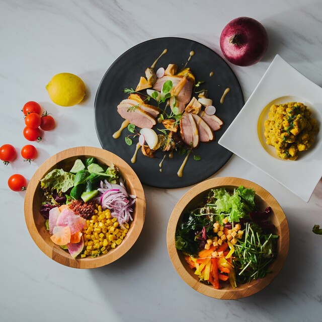 ランチタイムは、季節ごとに内容が変わるハーフブッフェがおすすめ。前菜・サラダ・スープ・デザートがブッフェスタイルで楽しめる。ビュッフェの内容は月替わりなのでいつ行っても飽きることがない。
