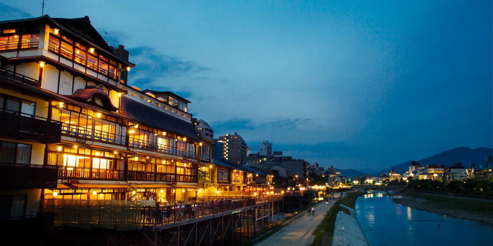 鴨川沿いというロケーションも魅力のひとつで、春には桜並木が続く木屋町通りが一面ピンク色に染まります。ライトアップが行われる3月下旬~4月上旬には風情ある夜桜とともに食事が楽しめるでしょう。