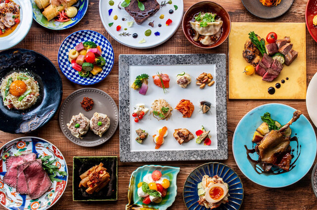 器や盛り付けにもこだわりがあり、場を盛り上げてくれるだろう。迷ったときには定番から旬のおすすめまでそろった「前菜 盛り合わせ 全部のせ」をどうぞ。
