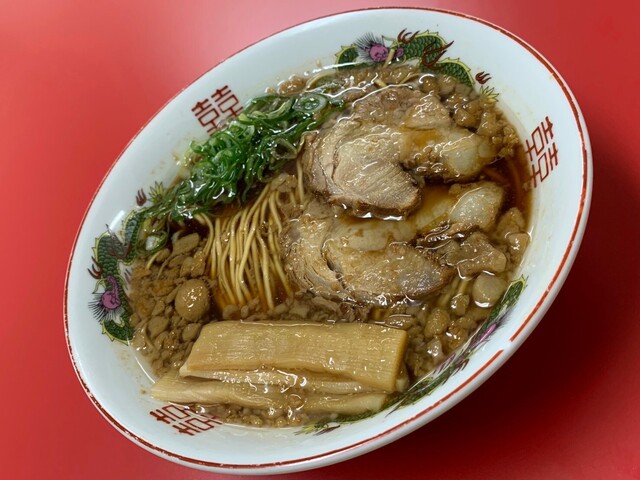 トッピングはチャーシューにメンマにネギだが、青ネギがたっぷり入っているのがうれしいポイント。こってり背脂をネギがさっぱりさせ、バランスのよい味に仕上げてくれている。