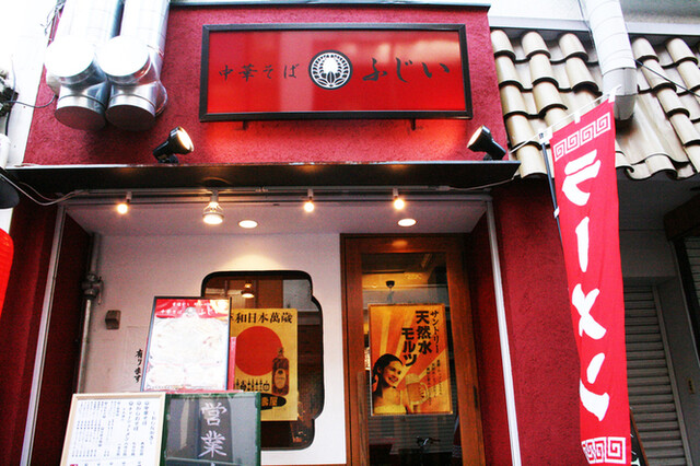 「中華そば ふじい 難波千日前店」は、大きな赤い提灯が目を引く中華そばの店。基本は店の名前通り「中華そば(890円)」。醤油ベースのスープは、鶏ガラと野菜のうまみが濃縮された味。ここに揚げた背脂がたっぷり入った、濃厚醤油ラーメンが人気の店である。
