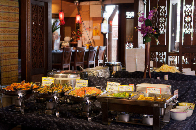 本場タイ人が作る「酸っぱい・辛い・甘い」をバランスよく取り入れた本格タイ料理が、ランチタイムはバイキングで楽しめる。新鮮なタイハーブや野菜を取り扱うタイ食材専門店を直営しているので、ハーブのいい香りがするタイ料理が味わえると評判だ。