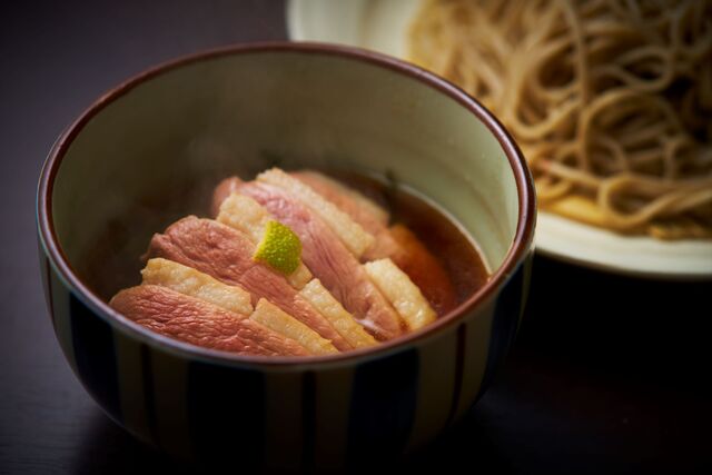 石臼引きの国産蕎麦粉を、出来るだけ提供する直前に手打ちをしてくれるので、打ち立ての新鮮な蕎麦がいただける。河内鴨のロースを贅沢に使用した「鴨なんば」や「鴨せいろ」は特におすすめの逸品。お酒のつまみにぴったりな「河内鴨のたたき」なども豊富に用意している。