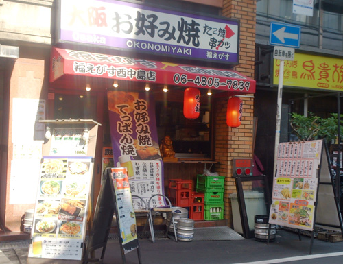 大阪人には有名な粉もんチェーンの「あほや」、ここ西中島でも大人気だ。たこ焼きはもちろん、ここの名物は「ぺちゃ焼き」。たこ焼きに卵・チーズをトッピングして、ぺちゃんこに焼き上げる「あほや」の名物。