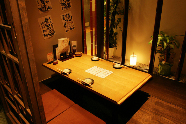 ゆったり落ち着く半個室と人数に合わせて貸切も可能な個室もあり、接待や飲み会、特別な日の食事など幅広いシーンで利用することができる。