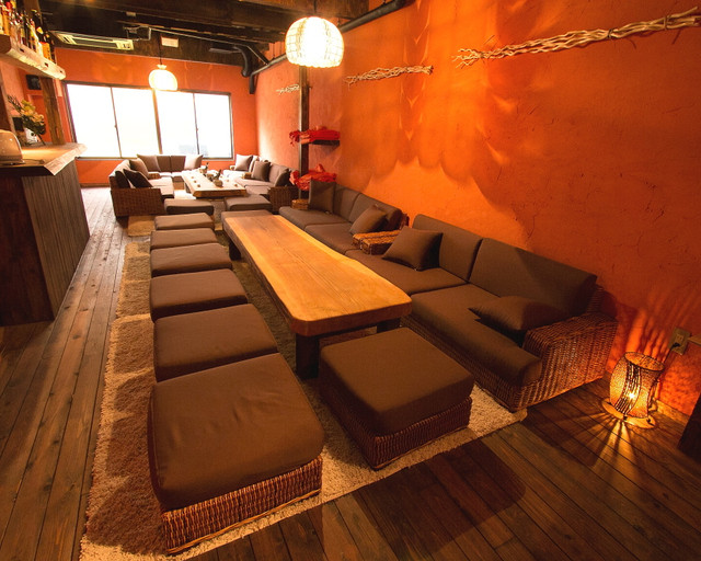 なんば駅より徒歩3分、生きたまま調理するオマール海老を使った特別料理が人気の活海老バル orb Resort ウラなんば。リゾート気分を味わえる広々とした店内には、居心地の良いソファー席とプライベートバーを完備した個室もあり、パーティーや女子会などの大人数での利用にもぴったり。