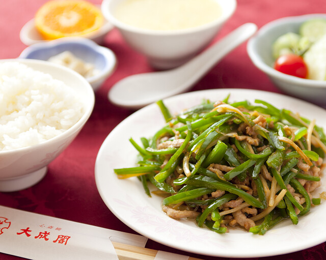 おすすめのランチメニューは、「森本名物!四川式よだれ鶏セット(1600円)」。蒸し鶏はボリュームたっぷりだが、ピリ辛ダレがさっぱりとして食べやすいひと品。タレは、蒸し鶏の下に敷いてあるもやしとの相性も抜群。ご飯はコシヒカリで、おかわり自由なのもうれしいポイントだ。