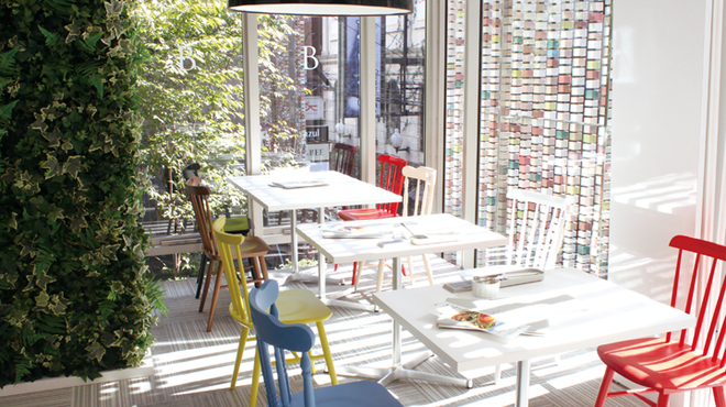 グランフロント大阪の地下1階にあるカフェ。スイーツが美味しいと評判。盛り付けにもこだわっているメニューが多く、目でも楽しむことができる。