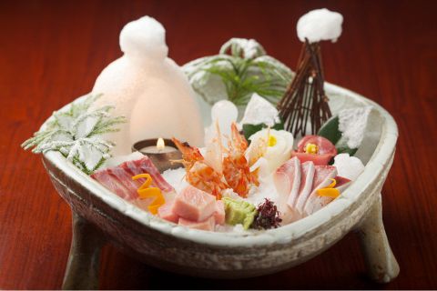 ランチメニューは、平日はなんと880円で「日替わり御膳」が食べられるほか、名物の鯛茶漬けが堪能できる「鯛茶漬け御膳」(1,680円)など手頃な価格の御膳が数種類用意されている。重要な会食には前日までの予約が必要な「鯛阿彌」(3,500円)や「松花堂弁当 雪月花」(2,500円)がおすすめだ。