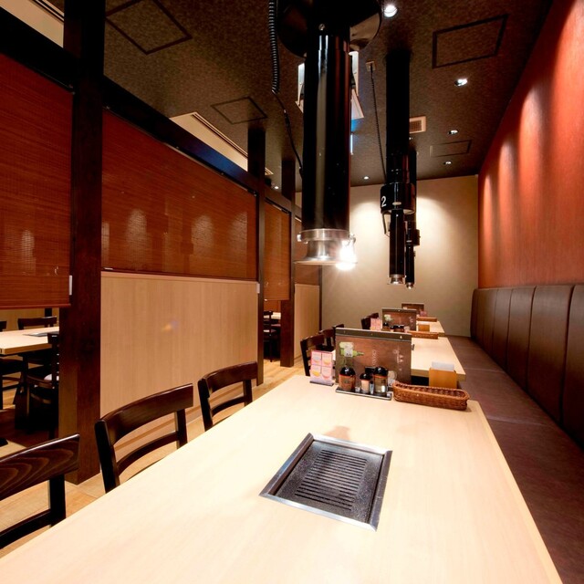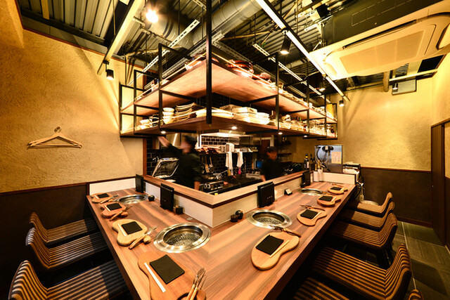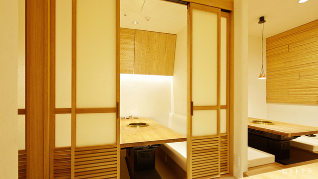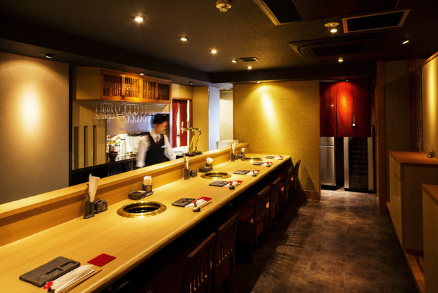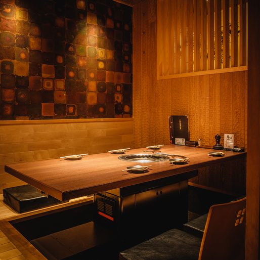 落ち着きある空間に仕上がっている店内には、カウンター席のほか、ソファ個室や掘り炬燵タイプの個室が用意されているので、最大で23名までの宴会にも対応している。肉の仕入れ先は複数に及ぶため、神戸牛や佐賀牛など、質の高い焼肉が楽しめる。
