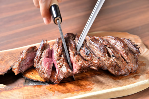 焼き加減によって味が全く異なるという牛肉の特質にこだわりをもつ。希少な国産和牛を使った名物の「ハラミステーキ」は、スタッフが客の前で焼き上げるスタイル。熟練技による極上の焼き上げりが食欲をそそる。
