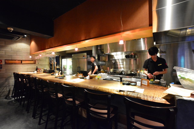 カウンター席ならば、その豪快な調理方法を眺めることができ、視覚からも料理を楽しむことができる。