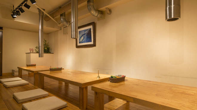 店内の雰囲気は焼肉屋というよりはバーのようにムードがある。肉の盛り付けも洒落ている。青みのある照明とアクアリウムが、肉汁したたる焼肉とコントラストをなしていて印象的だ。席はカウンター、テーブル、座敷が用意されている。デート、飲み会、家族連れそれぞれの客層にマッチする多様性も兼ね備える。希少な部位も多いため、なるべく早めの時間に来店するのがベター。