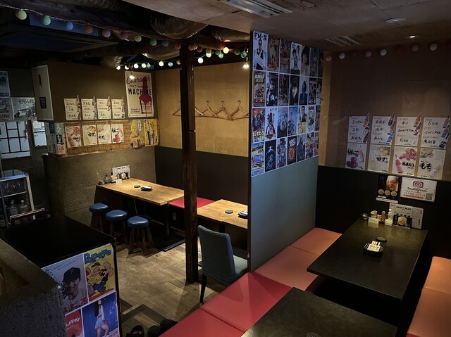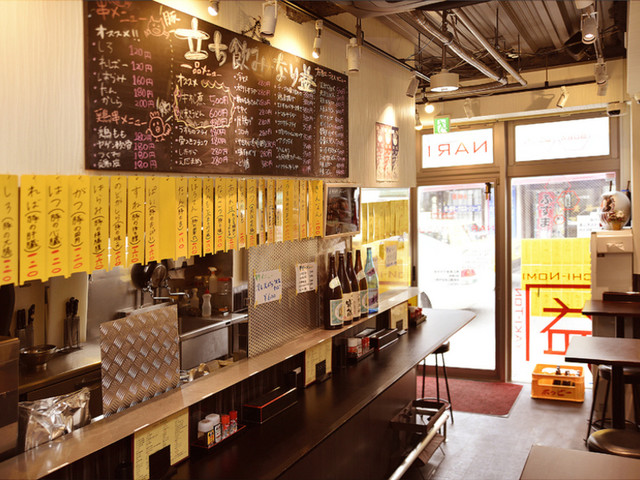 席数は最大28席だが、間取りが縦長のため一見こじんまりとした印象を受ける。カウンターや二人掛けの席に座れば、狭いながらも居心地がいい懐かしい串焼き屋の印象を受ける。