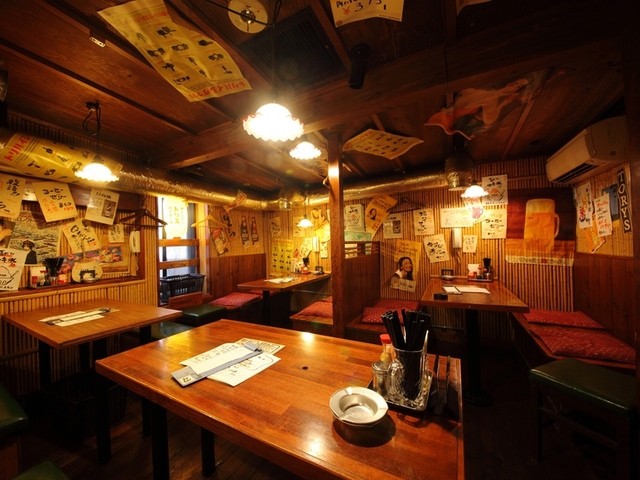 立ち飲みスペースとカウンター18席からなるコンパクトな店内は、西口商店街を象徴するかのような渋くて昭和の雰囲気が溢れている。