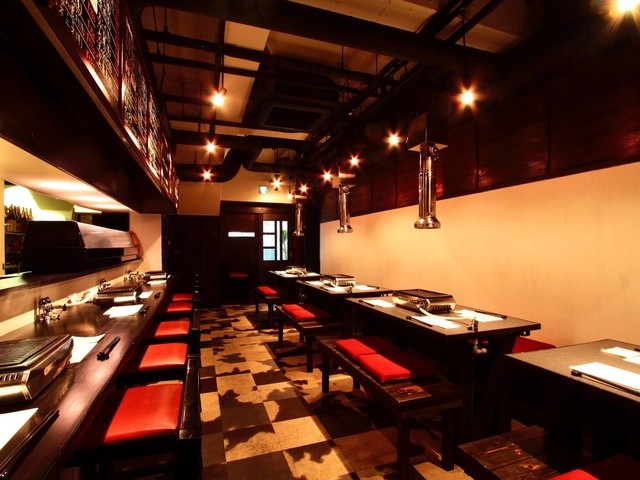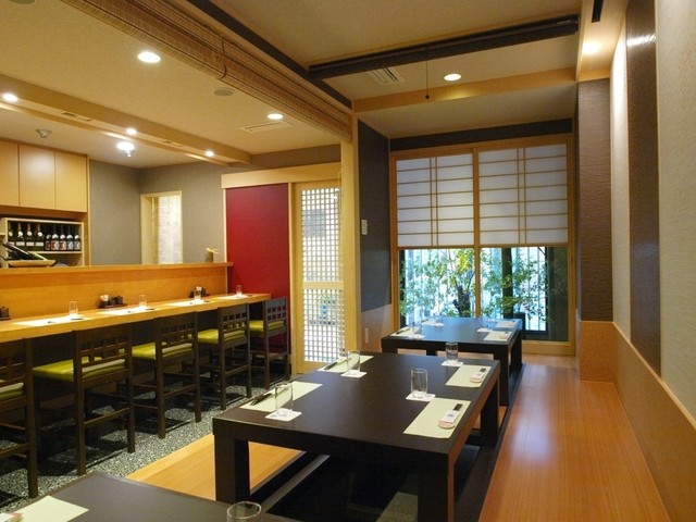 和モダンの落ち着いた雰囲気の店内には、厨房に面し職人との距離も近いカウンター席、ゆっくり食事を楽しめる鉄板付きのテーブル席のほか、周りを気にせず安心して利用できる完全個室を用意し、特別な日や接待での利用にも最適。