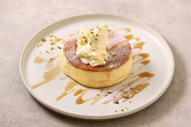 ふわふわの生地が口の中でほろりと崩れるパンケーキが名物。メープルシロップとバターでいただくシンプルなものから、生地に素材を練りこんで焼き上げた変わり種、季節限定メニューまで色々な味が用意されている。