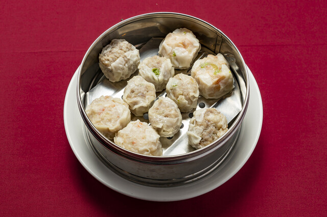 看板メニューの「シウマイ盛合せ」は、昔ながらのシウマイ4個、特製シウマイ・えびシウマイ・かにシウマイが2個ずつ入った大満足のラインナップ。複数人で訪れてシェアするのも良いだろう。