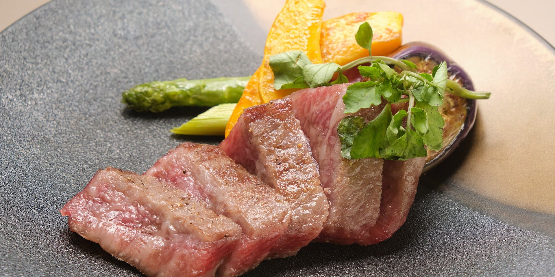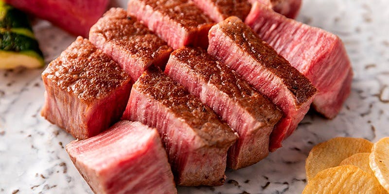 話題の熟成肉をはじめ、サーロイン、フィレ、フィレの中でも最も柔らかく味わいのある「シャトーブリアン」など最高級の和牛は、円居のこだわりである「大吟醸カット」に残った部位のみが提供される。