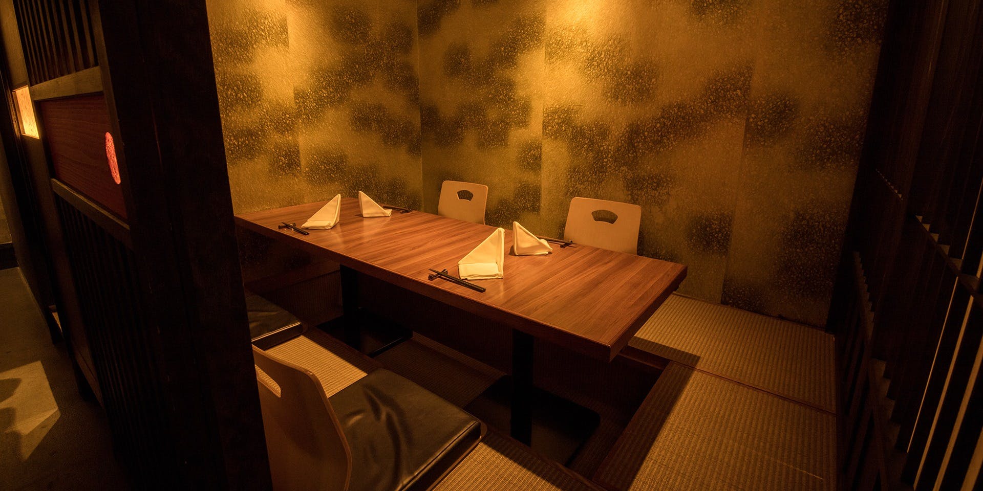 またカップル向けの個室や、より落ち着いて食事ができるテーブル席の用意もあり、カウンター席同様サービスが行き届いているとこちらも評判。