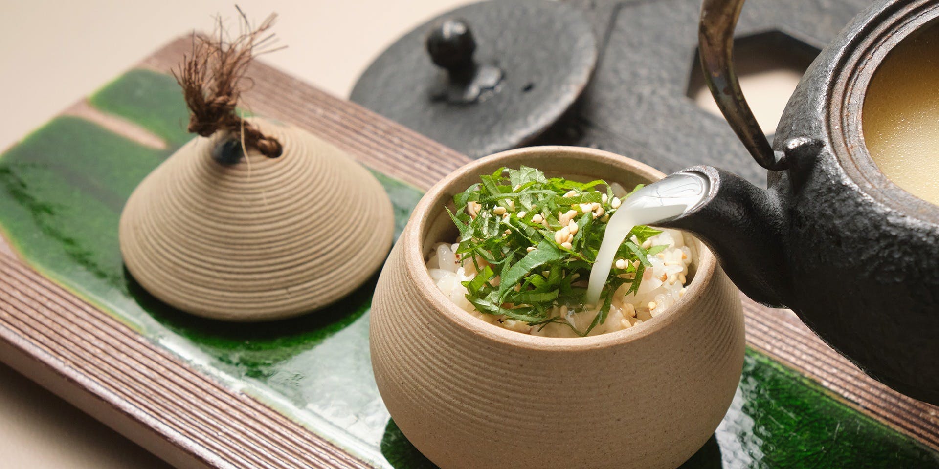 心 -SHIN-の焼きめしはなんと、お出汁でいただく「焼き茶漬け」。デザートやドリンクもあわせて、最もさわやかに退店できる鉄板焼きのお店だ。