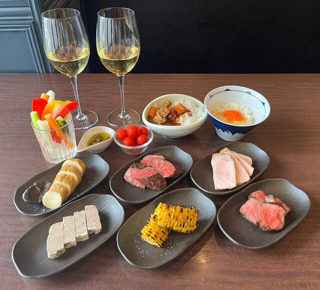 肉のうまみを知り抜いた職人技が光る店だが、大宮店は土日・祝日に限りお昼からオープン。お酒も楽しみたいという方には、お任せコースに飲み放題をつけることでよりお得に利用することができる。