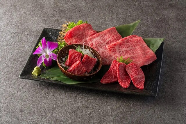 こちら「牛兵衛 草庵(ギュウベエ ソウアン)」の肉は、最高級の山形牛を契約農場から一頭買いしたもの。肉質はきめ細かく、サシはまるで大理石のよう。一頭買いならではの希少部位もあり、肉のうまさを存分に味わえる店だ。