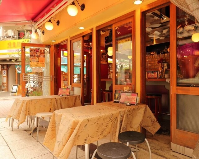 黄色と赤のファサードが目を引くお店には、カウンター席、シンプルなテーブル席のほか夏にぴったりの心地よいテラス席が設けられている。活気にあふれ、ワイワイと仲間と一緒に楽しめる雰囲気で、歓送迎会や忘・新年会などにもおすすめ。