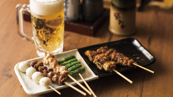 焼き鳥は、「ハツ」(120円)、「レバー」(150円)、「もも」(190円)、「はらみ」(190円)「ゲンコツ」(190円)などからあるが、食べログなどの口コミサイトでも、「レバーとハツがオススメ」、「焼き鳥は全ておいしい」という口コミが多い。タレ・塩・生姜醤油で焼き鳥を味わえる。絶妙な焼き加減で焼いた焼き鳥に付けているタレは、50年間継ぎ足して使用している秘伝のタレだ。様々な部位を楽しめる「俺のおまかせ六本セット」は900円とお得。美味しい焼き鳥を日本酒や焼酎などで堪能できるお店。