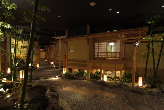 「北大路 赤坂茶寮」は、門をくぐり抜けた瞬間都会の喧騒から離れた別世界が広がる。京都の町並みを意識した和の大空間は28室240席の個室で構成され、2名から90名まで対応可能だ。