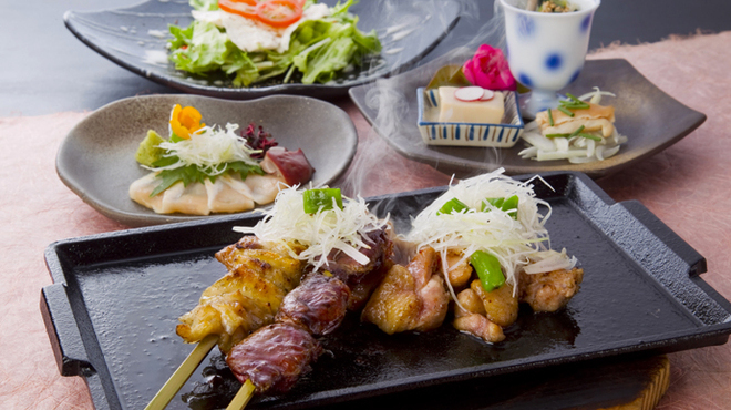 しゃぶしゃぶ意外にも、水炊き、刺身、焼き鳥、そして創作料理などを楽しむことができる。焼き鳥は、1本あたり210-400円ほどである。焼き鳥のメニューの中でも人気のメニューであるつくね(400円)、ハツ(290円)、おっぽ(290円)は、ジューシーで絶品だ。炭火でじっくりと高温調理しているため、鶏の旨みや肉汁を味わうことができる。