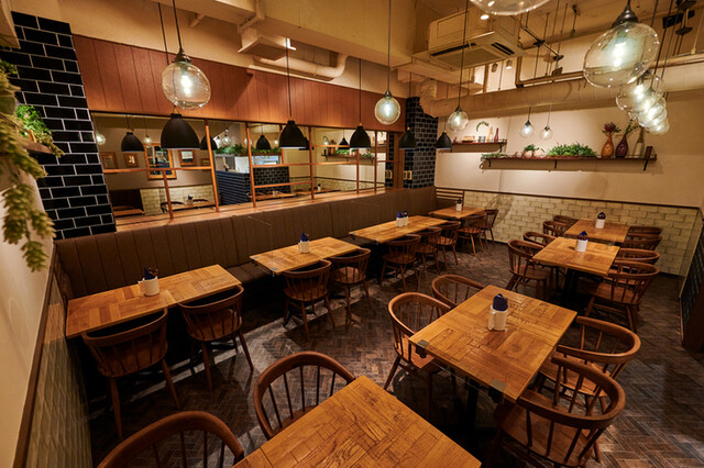 木目と白をベースとした落ち着きあるインテリアに、都心にいることを忘れてしまうだろう。40席ある開放的な店内の雰囲気も魅力だ。