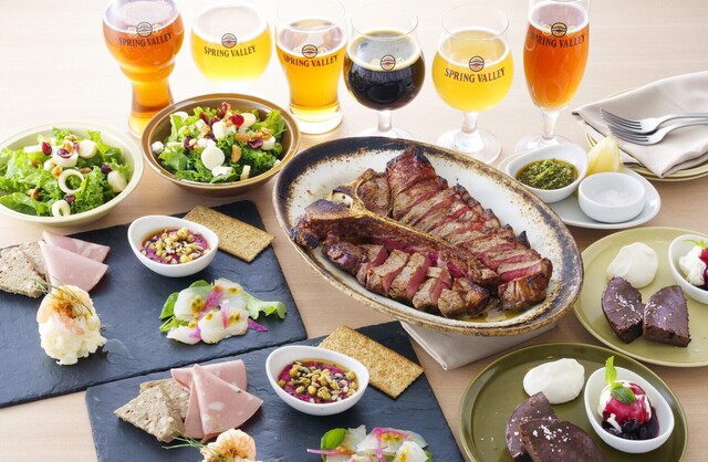 なおランチメニューの注文で最初の一杯に限り、+500円でハーフサイズ、+600円でレギュラーサイズビールが注文可能。お得にスプリングバレーのビールを楽しむことができる。