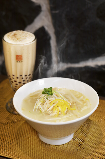 人気No.1の「豆漿鶏湯麺」(トウジャンジータンメン)は、温かい豆乳と黒酢のふるふるの豆乳汁麺に鶏をトッピングした一品。他にも、台湾では定番の「鶏湯麺」(ジータンメン)や台湾のソウルフード「牛肉麺」など、本格派の台湾ヌードルを堪能することができる。