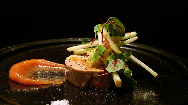 ウッディで落ち着いた店内はオープンキッチンスタイルなので、ライブ感を満喫しながらコース料理を楽しもう。プリフィクスコースは3,800円から、仕入れによって内容は異なるが、「ニュージーランド産 仔羊背肉のロースト夏のハーブのソースで」や「スペイン産イベリコ豚肩ロースのローストサフランのソースで」などが楽しめる。前菜の「フォアグラ鯛焼き」も面白い趣向だ。