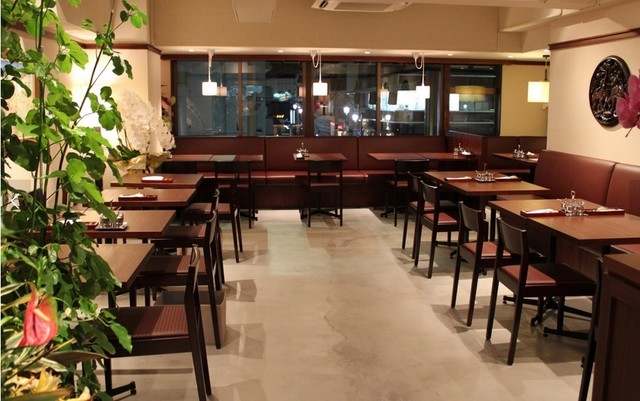 英国アンティーク家具を使用した店内は、シックで落ち着いた雰囲気。それぞれのテーブルには生け花も刺してあり、デートや女子会などにピッタリの場所だ。