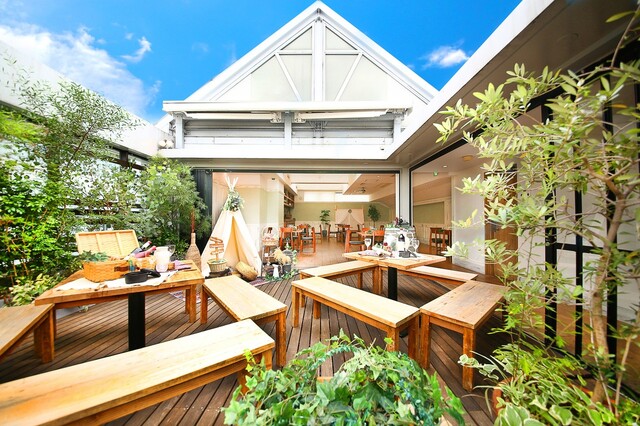 まるで絵本のなかに入り込んだような可愛らしい雰囲気を持つ「アクイーユ」。緑に囲まれた外観は訪れる人をわくわくさせ、店内も木材を基調に優しく落ち着きのある空間となっている。