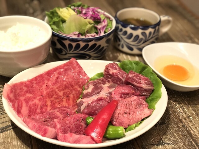 全国から厳選した黒毛和牛を堪能できる人気店で、ランチメニューもバラエティー豊か。予算やシチュエーションに合わせて選べるのもポイントで、好きな部位の肉を追加で単品注文するという手もある。