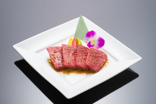 「ミスジ」、「とも三角」など、どれもが柔らかくジューシーな味わい。霜降り肉だけでなく、赤身肉にも力を入れている。特に「シャトーブリアン」はヒレの中でも最上級とされる希少部位で、数量限定ながら訪れたら是非食べたい一品である。