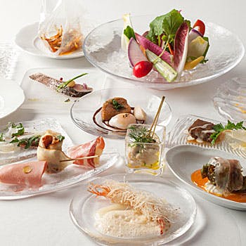 築地より毎日仕入れる新鮮な魚介と最高級黒毛和牛、季節の野菜などこだわり抜いた食材を用いた本格的なイタリアンメニューが揃い、アラカルト、コースメニューから選ぶことができる。人気の一皿は、「フォアグラのソテー」。鮮度、火入れにこだわって甘みを引き出した逸品だ。一休で予約できるディナーコースは9500円から。美しい夜景を望む窓側確約のプランや、記念日プラン、ソムリエが厳選してくれるシャンパンとワインがついたプランなど多彩なプランが用意されている。