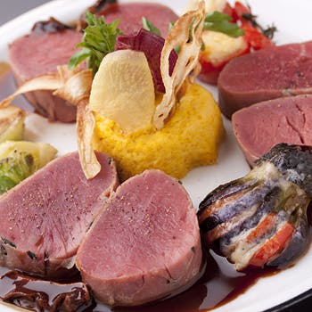 ぜひ食べて欲しい一皿は、ミシュラン1つ星を獲得したパリのレストラン「ステラマリス」で 16年間オーナーシェフを務めた経験を存分に生かした「仔牛の頭肉の煮込み」と「野うさぎのロワイヤル」。本場の味をそのままに提供する極上の逸品だ。フォアグラ料理や和牛ステーキをはじめ、厳選された旬の食材を使ったと本格フレンチのメニューが並ぶコースもぜひご堪能あれ。
