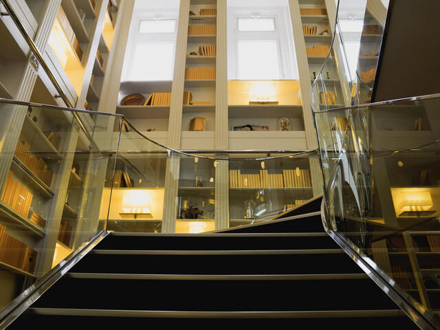 書斎をイメージした階段やネオンが飾られた店内はまるでテーマパークに迷い込んだよう。高級感や大人っぽいシックさの中に遊び心がふんだんに盛り込まれた内装に目を奪われること間違いなし。
